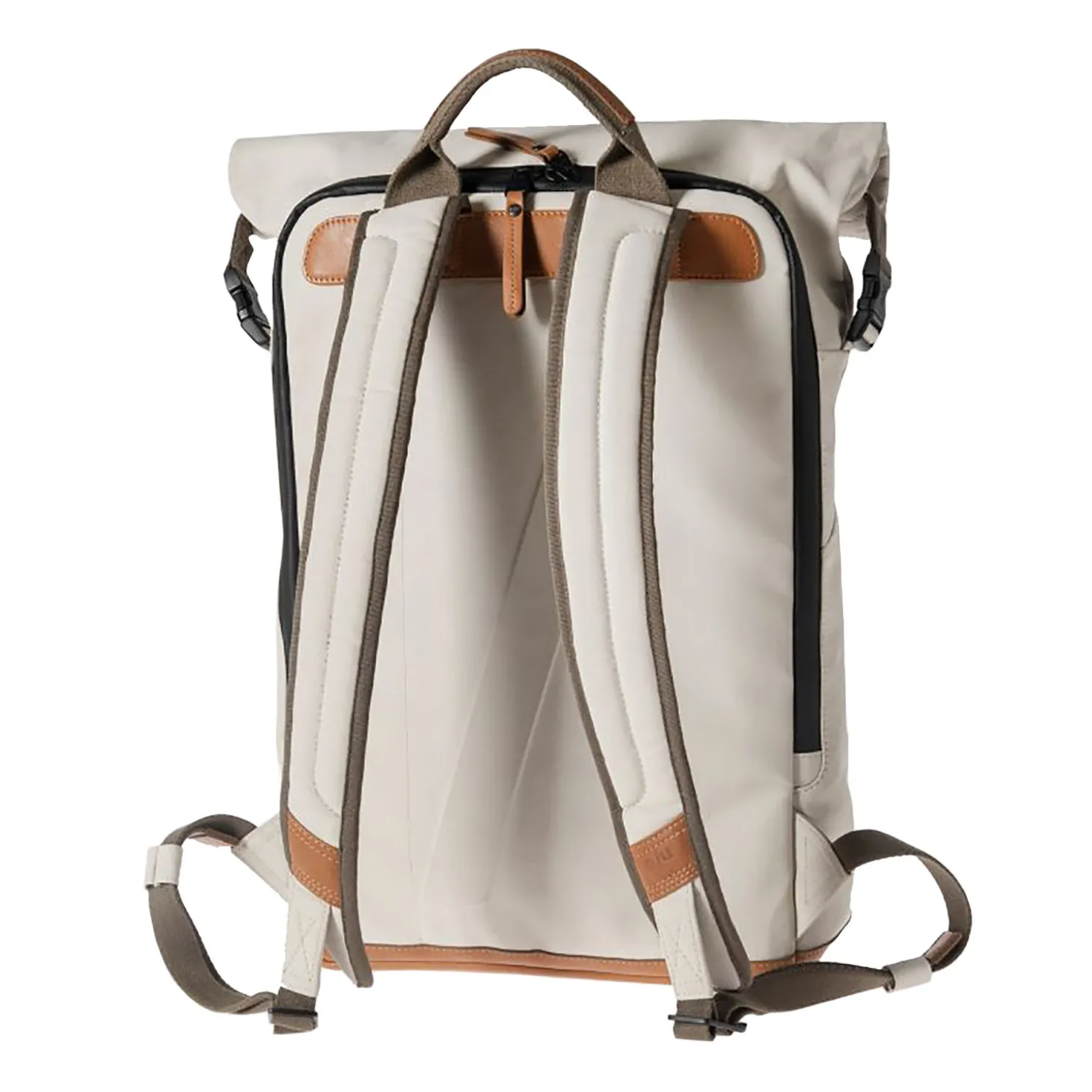 Fukui bietet so viele Funktionen – das Hauptfach ist über den Rolltop-Verschluss oder den Reißverschluss auf der Rückseite des Rucksacks zugänglich und beinhaltet ein gepolstertes Laptopfach, ein Reißverschlussfach und diverse Steckfächer für Handy und Stifte. Der Reißverschluss auf der Rückseite lässt sich weit öffnen, was eine übersichtliche Einordnung des Inhalts ermöglicht. Ein Reißverschlussfach auf der Vorderseite des Rucksacks sorgt nicht nur optisch für einen Hingucker, sondern bietet auch Platz für kleine Gegenstände, die schnell griffbereit sein sollen.