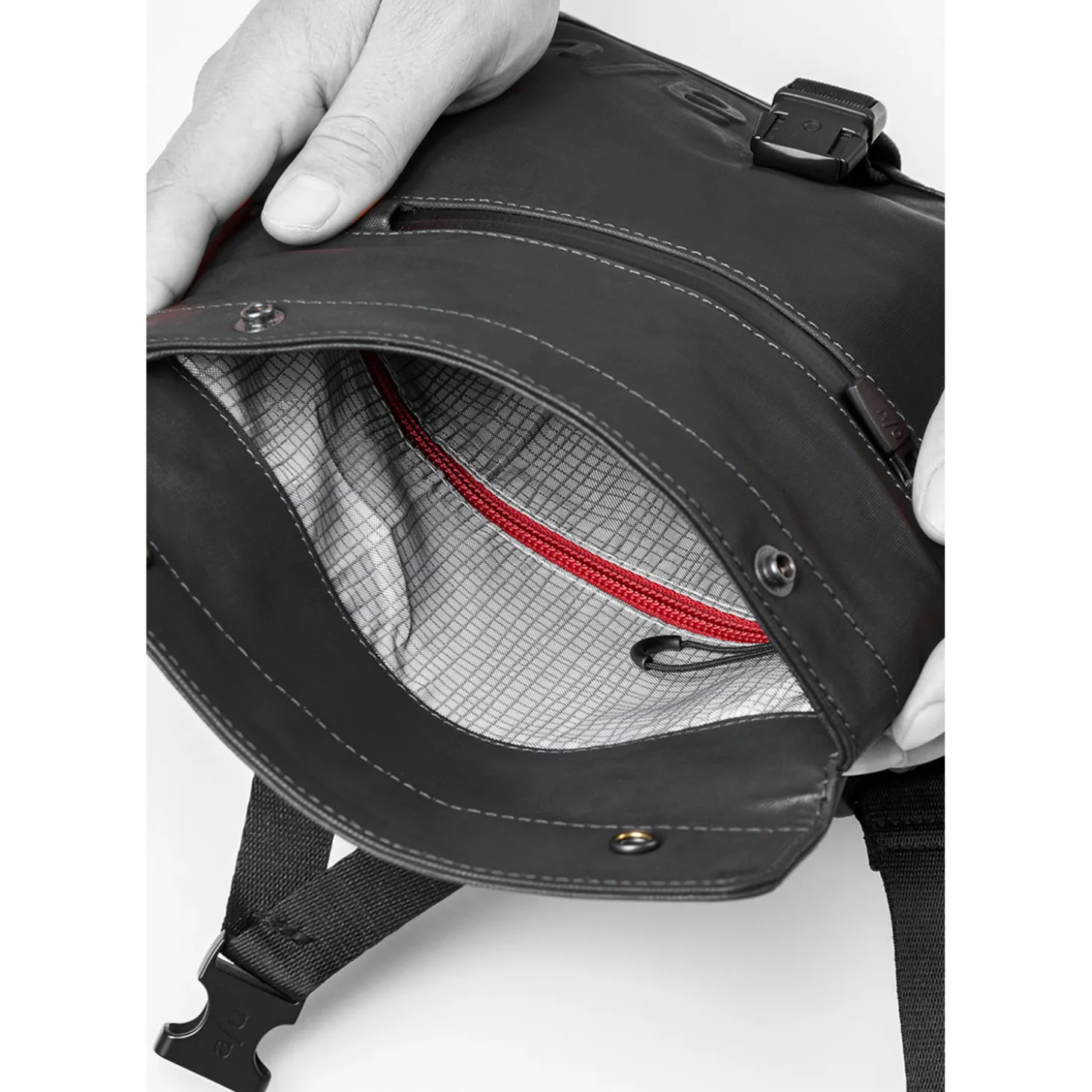 Diese Tasche ist aufgrund der vielseitigen Tragemöglichkeiten ein echter Allrounder: Sie lässt sich als Bauchtasche mit Rollverschluss oder auch als Umhängetasche mit Druckverschluss tragen, die dann mehr Volumen bietet.