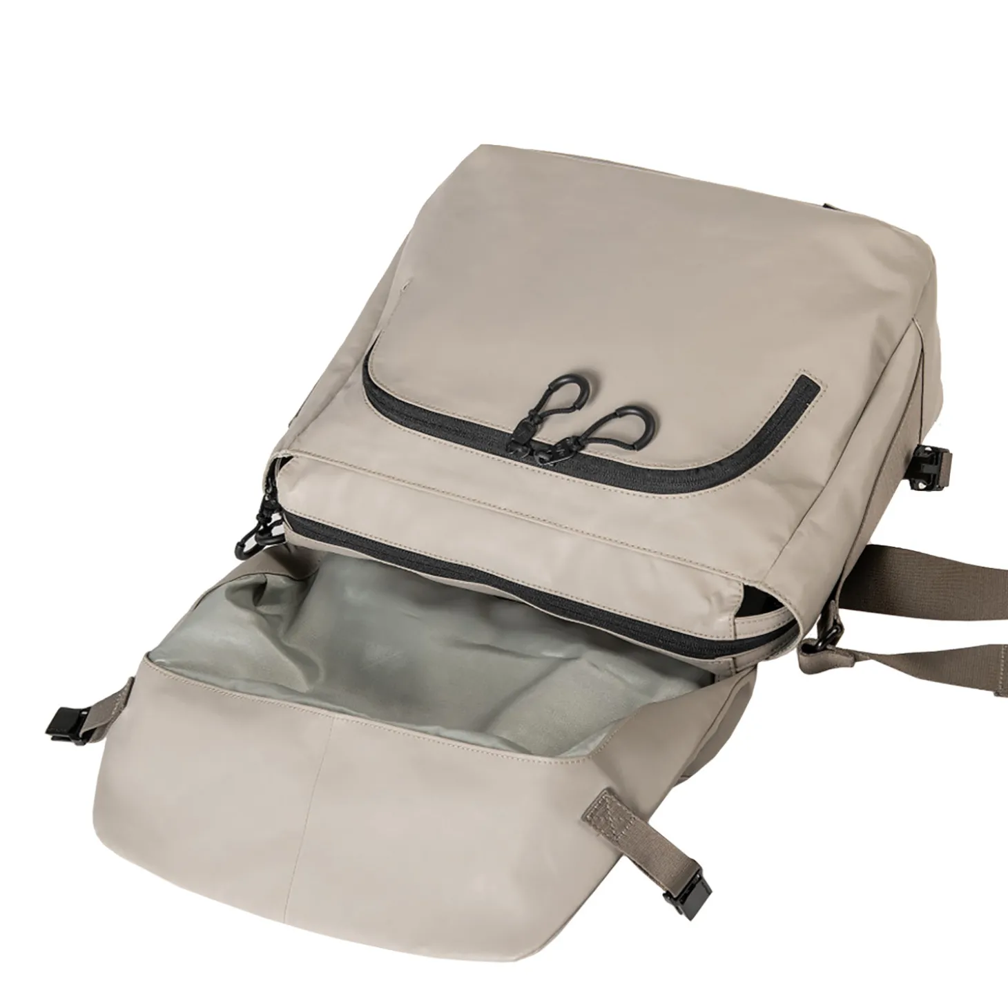 Das dicht gewebte, recycelte Nylongewebe mit seidenmattem Coating ist leicht und zudem wasserabweisend, so dass auch ein Regenschauer uns mit diesem Liebling nicht aus der Ruhe bringen kann. Durch das besonders leichte Material hat dieser Liebling ein geringes Eigengewicht und fällt je nach Tragevariante und Füllmenge stets ein bisschen anders…