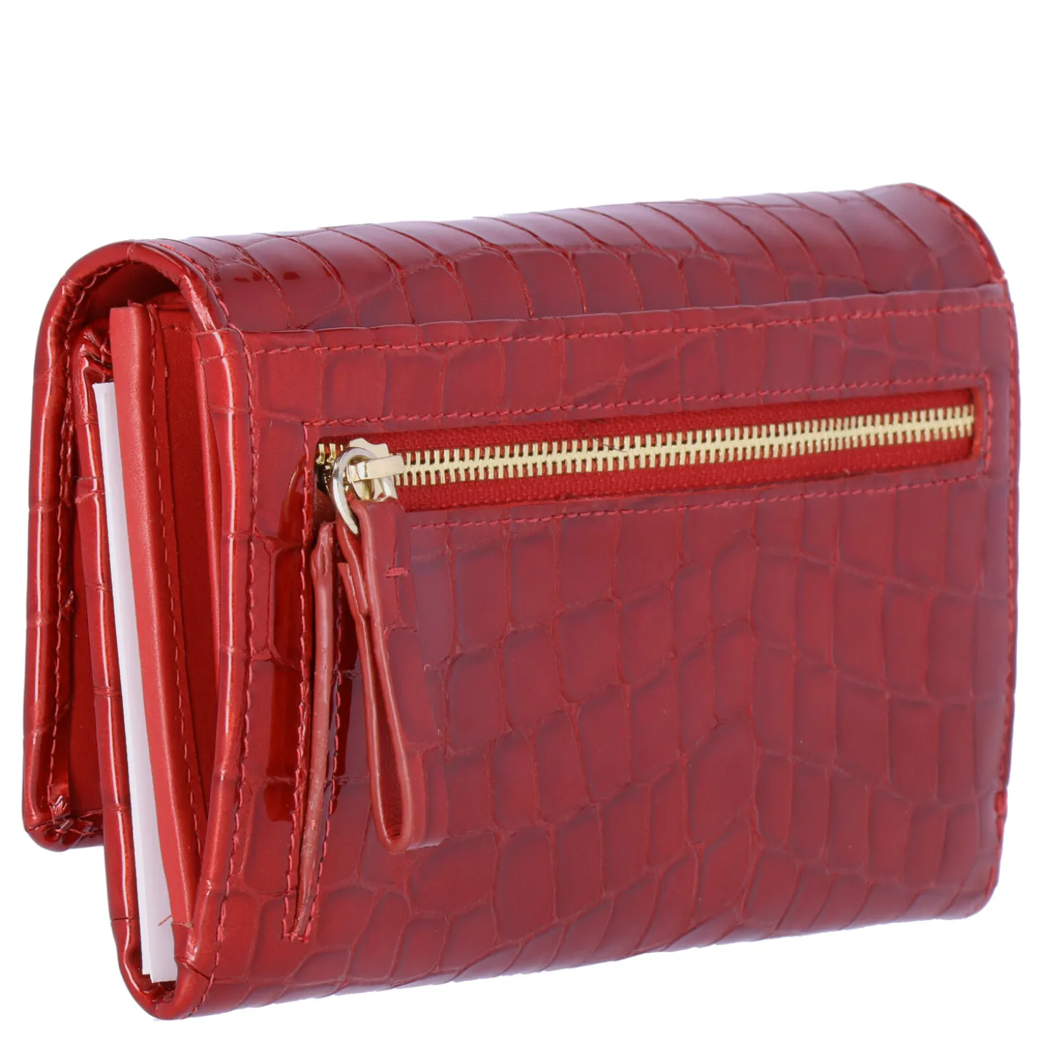 Stilvolle Geldbörse mit zeitgemäßem Kroko-Look. Das geprägte italienische Kalbleder verleiht der Börse eine einzigartige Weichheit und Geschmeidigkeit, wodurch sie sich besonders angenehm in der Hand anfühlt. Hinter dem charakteristischen Überschlagverschluss verbirgt sich eine durchdachte Innenaufteilung mit 2 großzügigen Scheinfächern und einem praktischen Reißverschlussfach für Münzgeld. Die Börse bietet außerdem 14 Kartenfächer, 6 Steckfächer sowie jeweils ein äußeres Steck- und Reißverschlussfach für zusätzlichen Stauraum. Die goldenen Metall-Accessoires und der dezente Metallic-Glanz unterstreichen die hochwertige Ausstrahlung der Geldbörse.