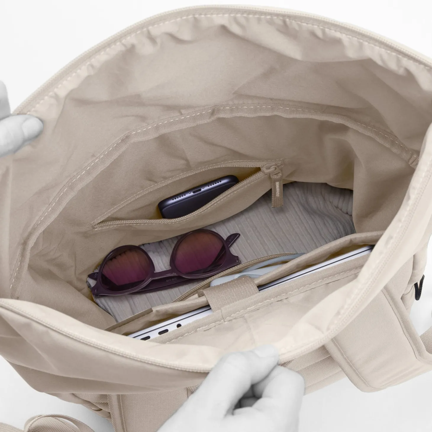 - Innenleben:2 Reißverschlussfächer
