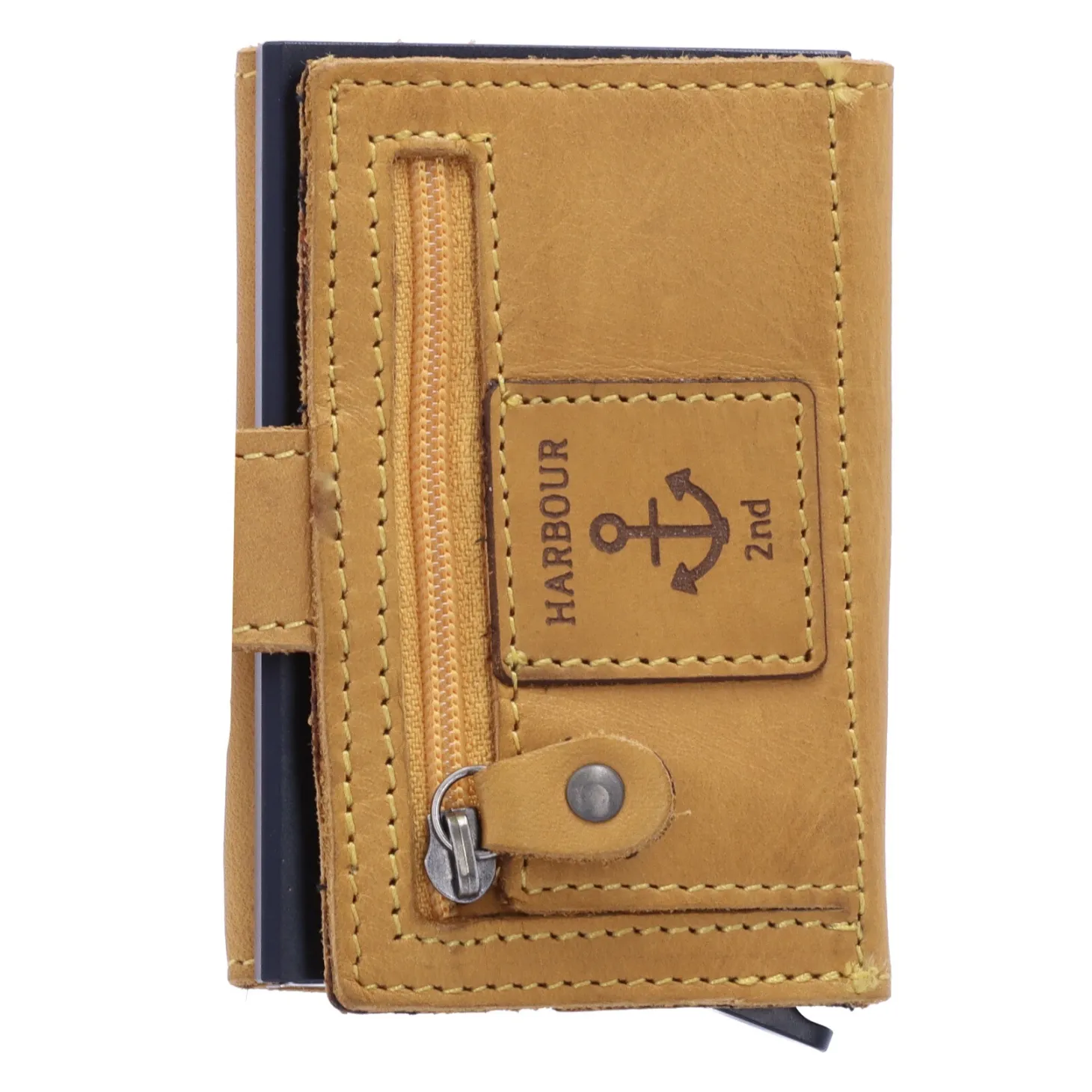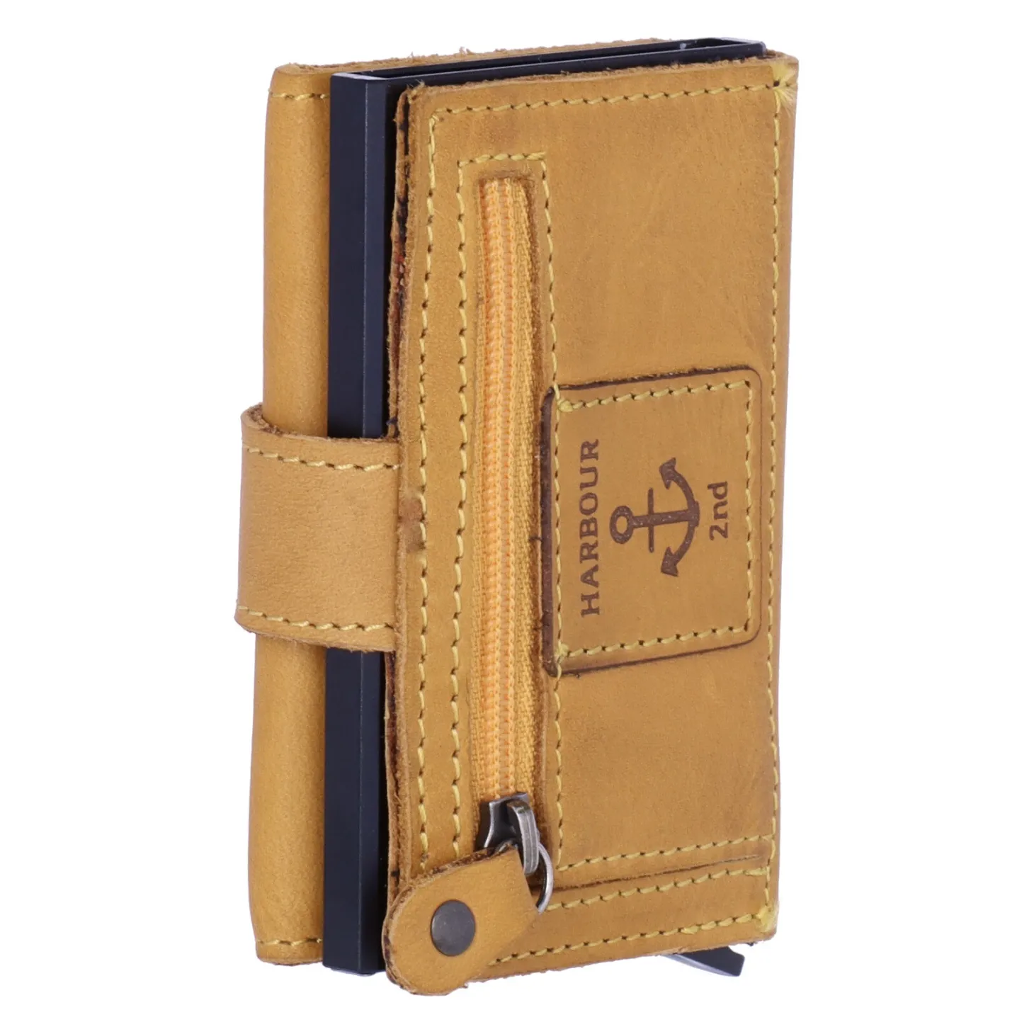 Der Liebling Robin aus der Anchor Love Kollektion von Harbour 2nd hat einiges zu bieten. Das Kartenetui ist von wunderbar weichem Rindleder ummantel. Im Aluminium-Case sind alle Karten vor dem Auslesen und somit vor Datendiebstahl geschützt (RFID geschützt). Je nach Prägung finden bis zu sieben Karten im Case Platz, die durch Betätigung des Hebels gefächert ausgegeben werden. In der Lederummantelung ist Platz für weitere Karten, sowie für Scheine oder Belege. Münzen können im Reißverschlussfach auf der Rückseite untergebracht werden.