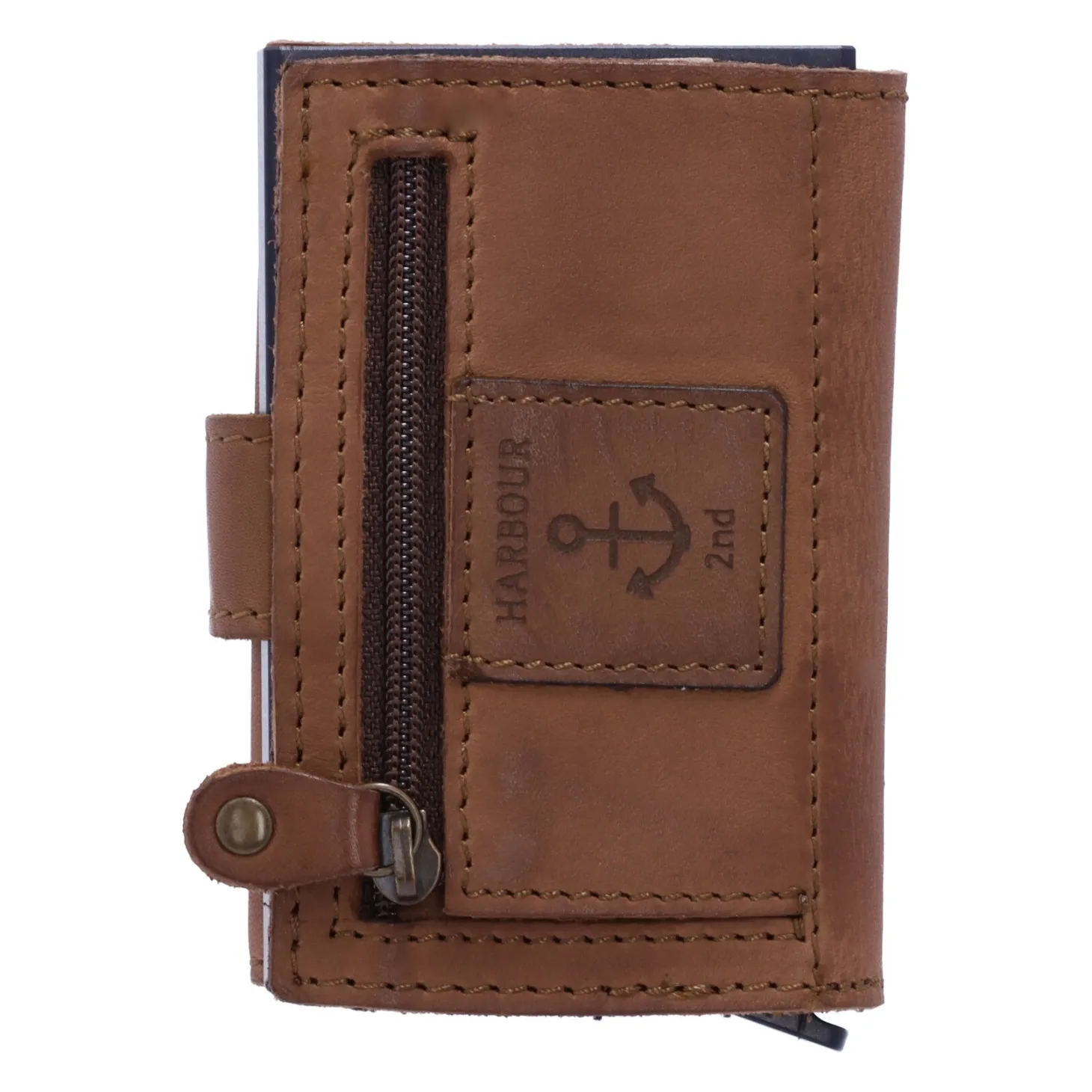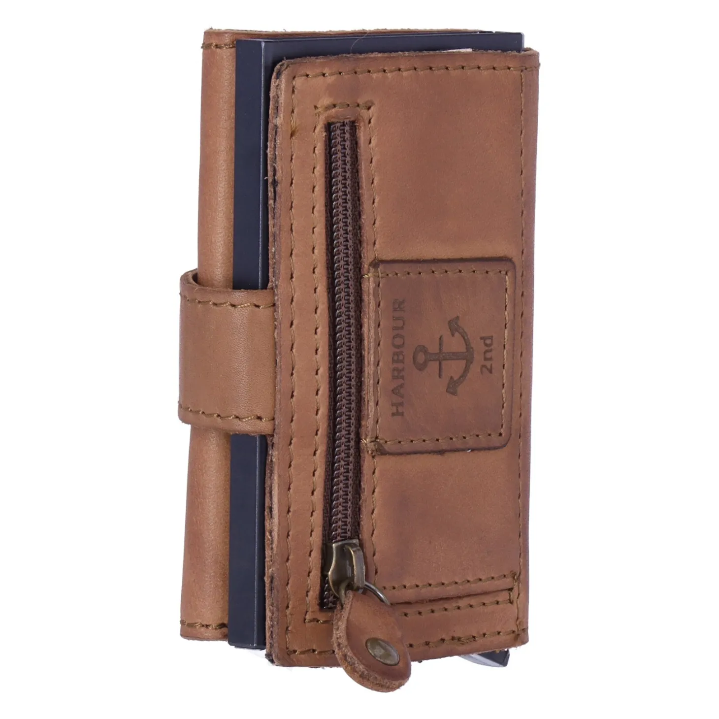 Der Liebling Robin aus der Anchor Love Kollektion von Harbour 2nd hat einiges zu bieten. Das Kartenetui ist von wunderbar weichem Rindleder ummantel. Im Aluminium-Case sind alle Karten vor dem Auslesen und somit vor Datendiebstahl geschützt (RFID geschützt). Je nach Prägung finden bis zu sieben Karten im Case Platz, die durch Betätigung des Hebels gefächert ausgegeben werden. In der Lederummantelung ist Platz für weitere Karten, sowie für Scheine oder Belege. Münzen können im Reißverschlussfach auf der Rückseite untergebracht werden.