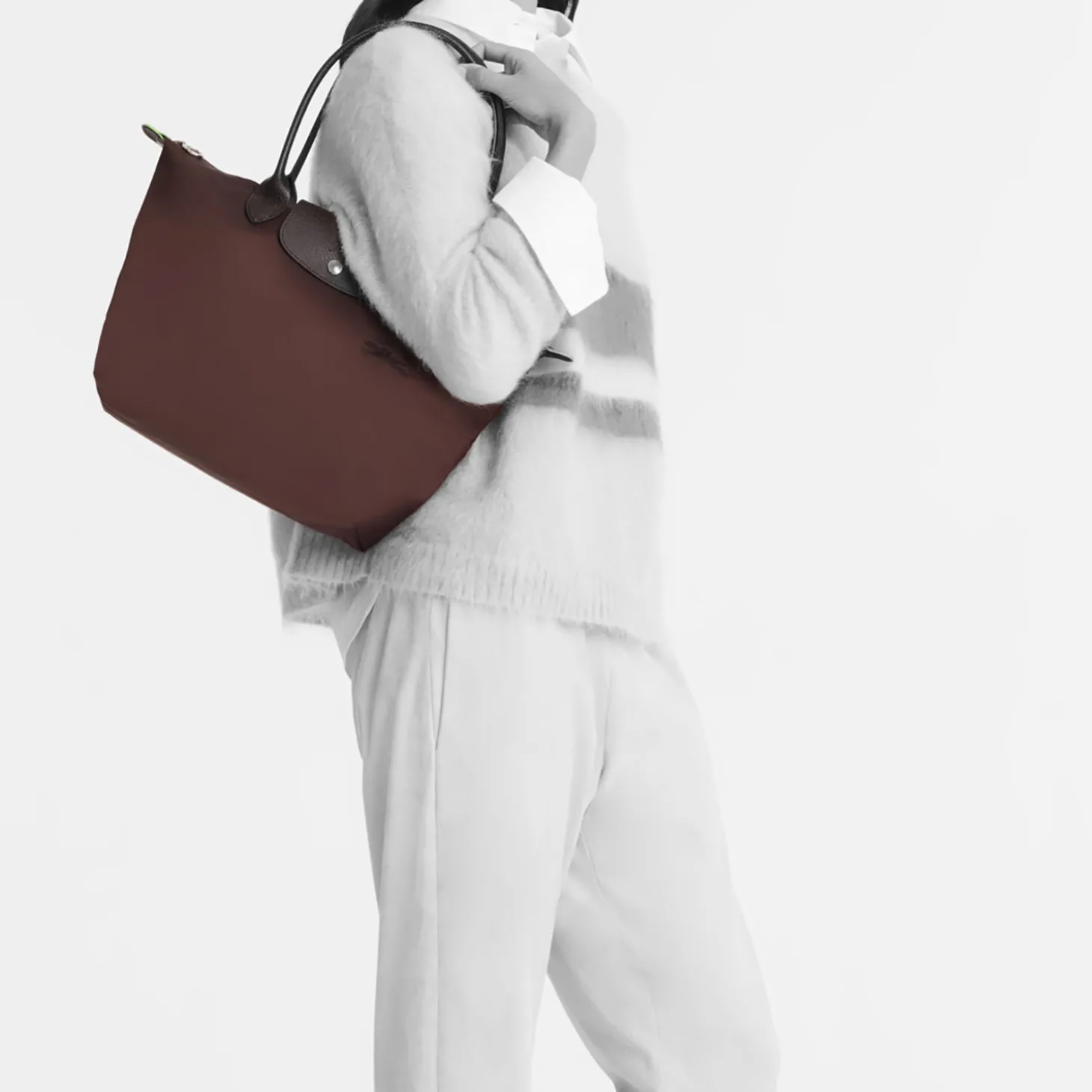 Wie alle Modelle aus dieser Serie läßt sich auch dieses auf eine minimale Größe zusammenfalten. Die Inspiration zu der speziellen Falttechnik ist auf die japanische Origami-Kunst zurückzuführen und machte die LE PLIAGE von Longchamp zu einem weltweiten Klassiker.