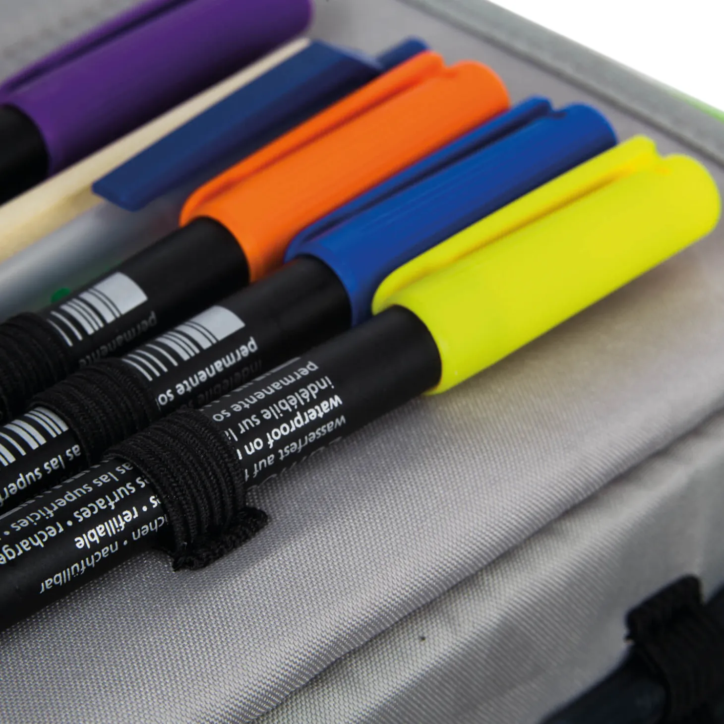 Das Mäppchen von Satch bietet extra viel Platz für Stifte, Geodreieck & Co.. Für Ordung sorgen Gummibänder und ein Trennfach mit Organisationsfunktion. In dem kleinen Reißverschlussfach lassen sich Tintenpatronen oder etwas Kleingeld sicher verstauen.