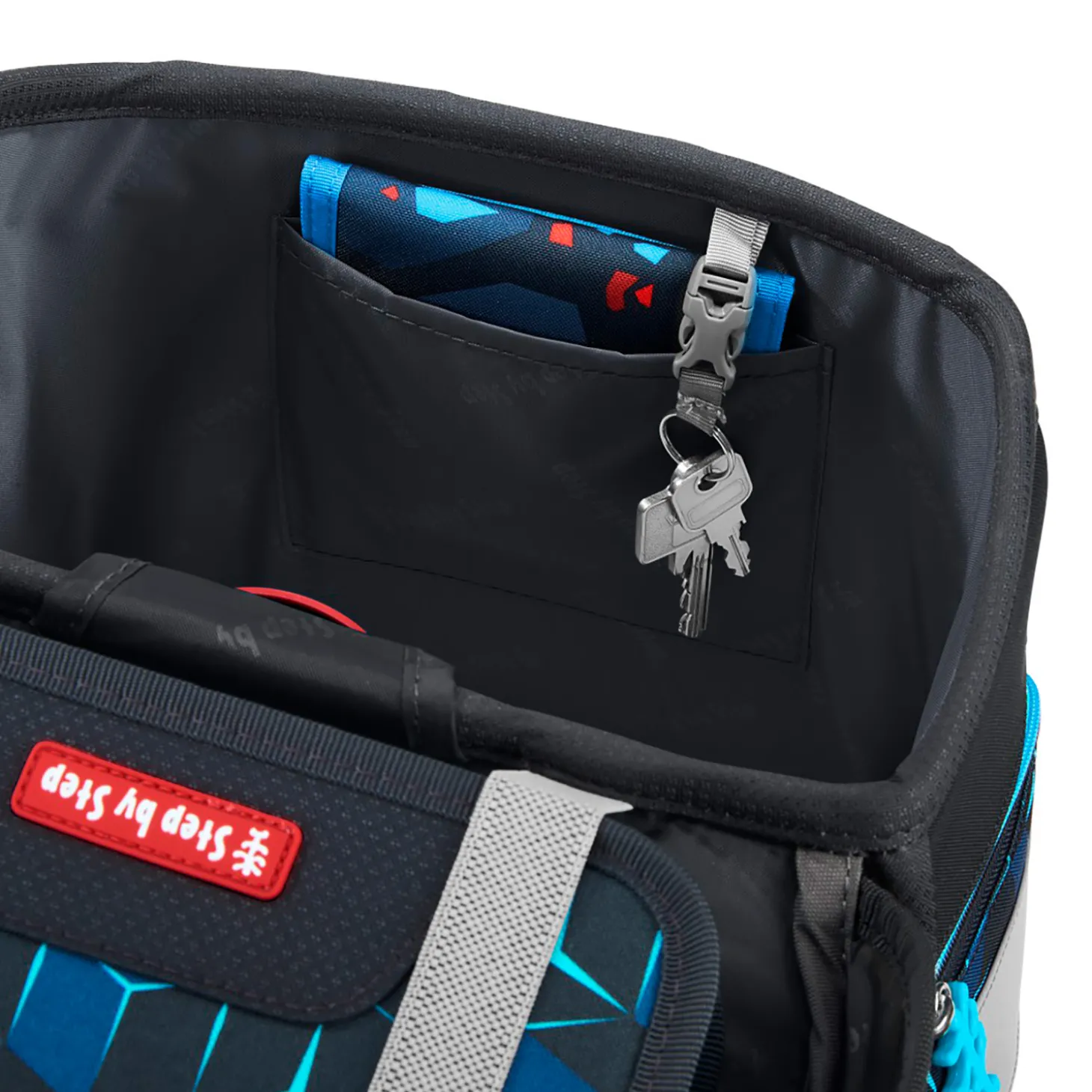 Der SPACE von Step by Step umfasst bereits alles, was für den Schulstart benötigt wird: ein gefülltes Federmäppchen, ein Schlampermäppchen, einen Sportbeutel, der sich am Schulranzen befestigen lässt und ein Set Magic Mags bestehend aus zwei Magneten und einem Anhänger. Die Magneten können nach Lust und Laune auf dem Schulranzen befestigt werden.