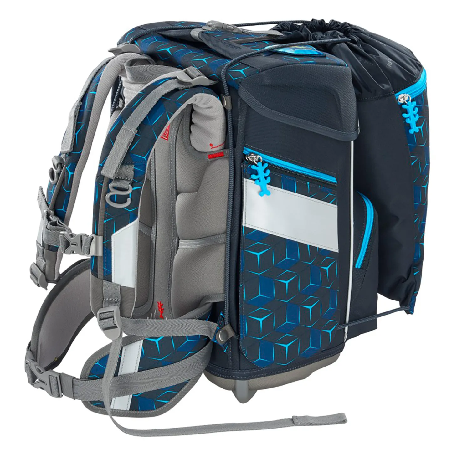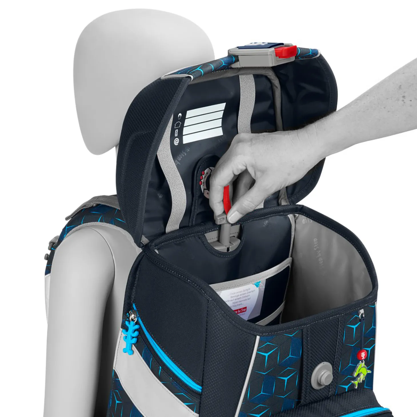 Anatomisch geformte Schulterriemen und das atmungsaktive, ergonomisch geformte Rückenpolster sorgen für einen optimalen Sitz und entlasten dabei den Körper in jeder Wachstumsphase. Der höhenverstellbare Brustgurt, sowie der Hüftgurt verlagern das Gewicht des Schulranzen von den Schultern auf den stabilen Hüftbereich.