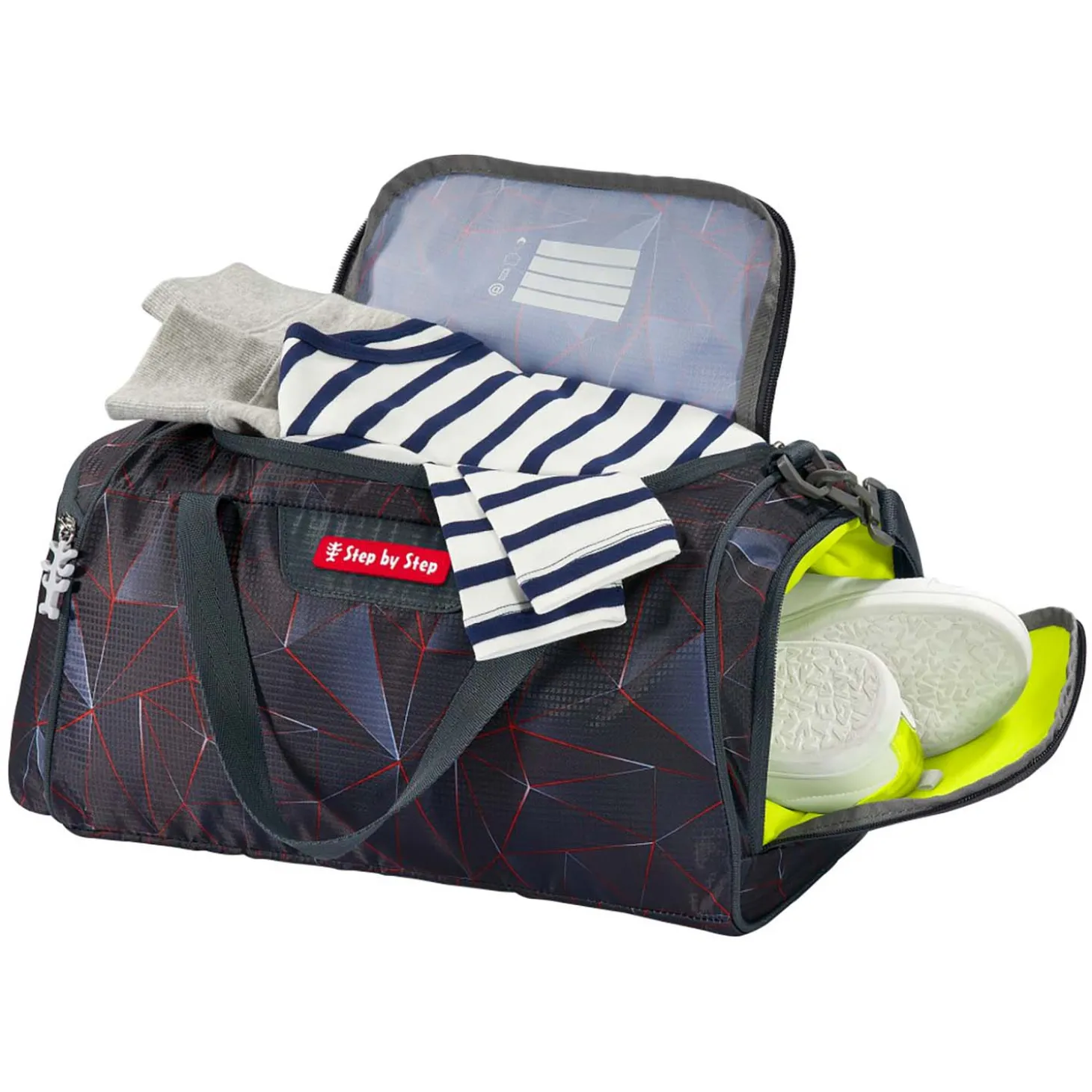 Diese Sportasche von Step by Step ist die ideale Ergänzung zu den Schulranzen, aber natürlich auch jederzeit ein zuverlässiger Begleiter auf dem Weg zum Freizeitsport.