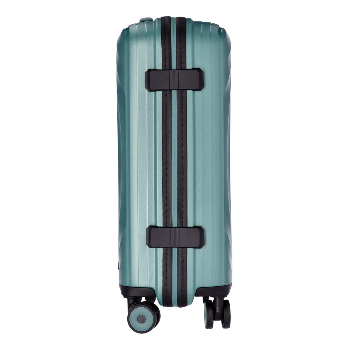 Vier kugelgelagerte Doppelrollen sorgen für leise und leichte Fortbewegung des Koffers – entweder auf zwei Rollen hinterhergezogen oder auf vier Rollen nebenhergeschoben.