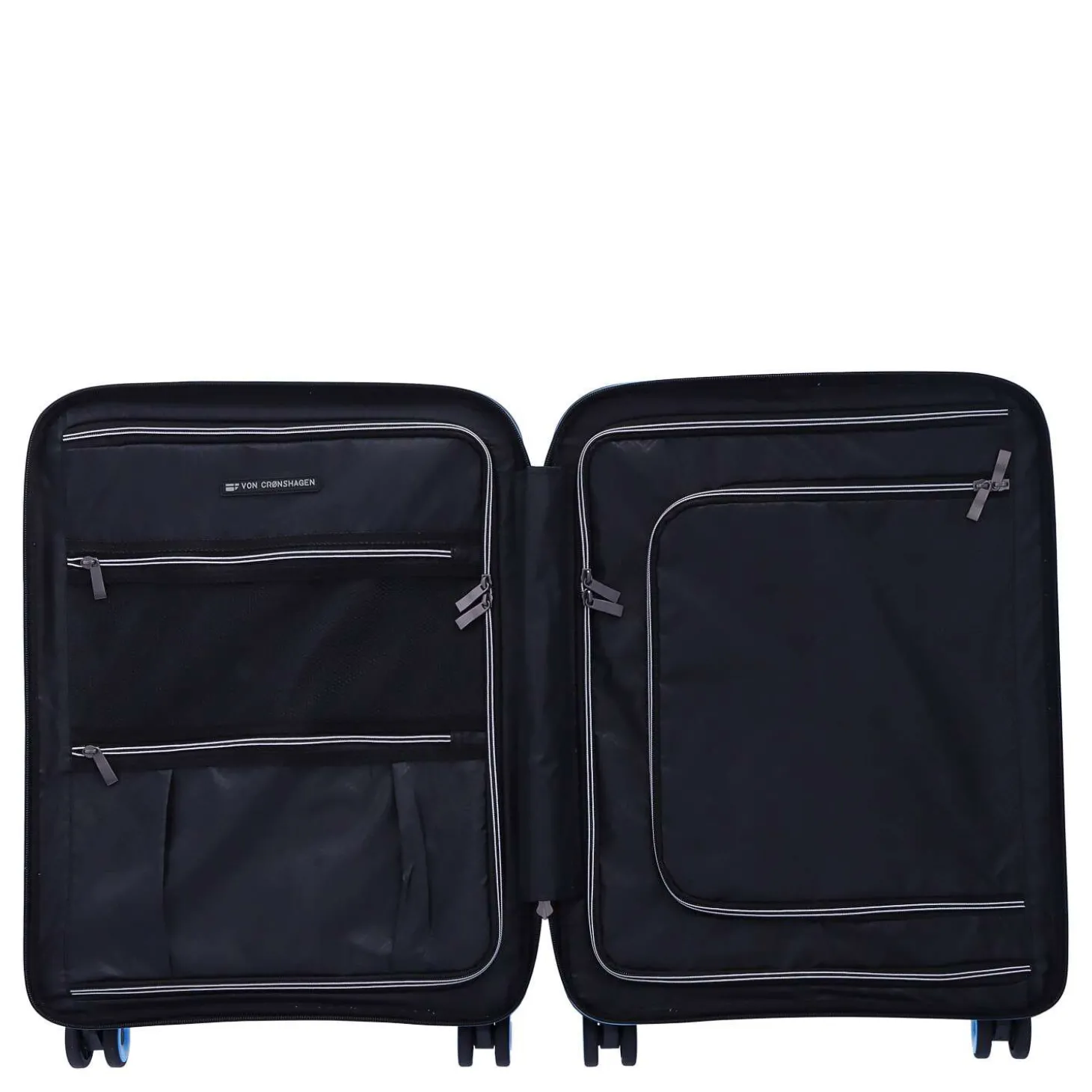 Durch die Gummilippe am Reißverschluss ist der Inhalt stets gut vor Schmutz und Feuchtigkeit geschützt. Hier drin Ordnung zu halten ist ein Kinderspiel. Auf zwei Kofferhälften finden Sie jeweils ein Reißverschlussfach mit Kreuzspanngurten auf beiden Seiten. Zudem befinden sich auf den Raumteilern Reißverschlussfächer.