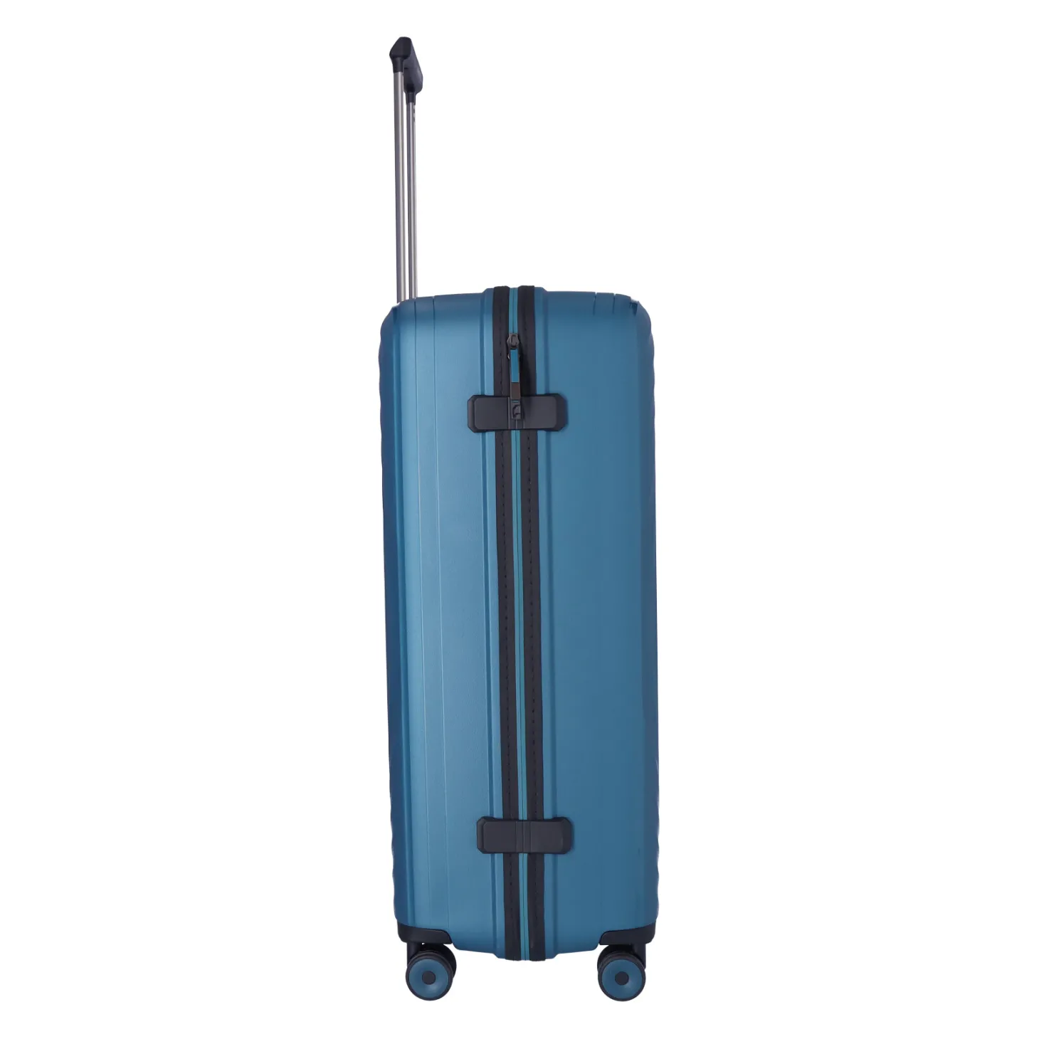 Vier kugelgelagerte Doppelrollen sorgen für leise und leichte Fortbewegung des Koffers – entweder auf zwei Rollen hinterhergezogen oder auf vier Rollen nebenhergeschoben.