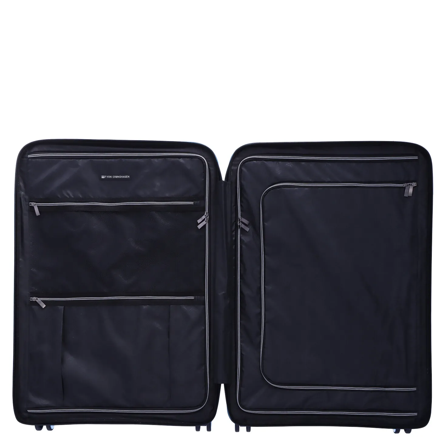 Durch die Gummilippe am Reißverschluss ist der Inhalt stets gut vor Schmutz und Feuchtigkeit geschützt. Hier drin Ordnung zu halten ist ein Kinderspiel. Auf zwei Kofferhälften finden Sie jeweils ein Reißverschlussfach mit Kreuzspanngurten auf beiden Seiten. Zudem befinden sich auf den Raumteilern Reißverschlussfächer.