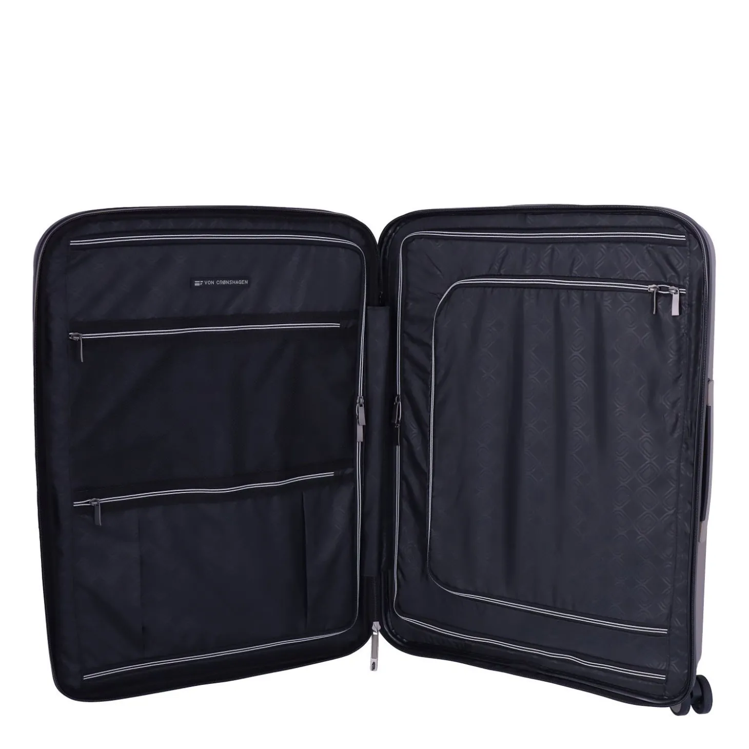 Durch die Gummilippe am Reißverschluss ist der Inhalt stets gut vor Schmutz und Feuchtigkeit geschützt. Hier drin Ordnung zu halten ist ein Kinderspiel. Auf zwei Kofferhälften finden Sie jeweils ein Reißverschlussfach mit Kreuzspanngurten auf beiden Seiten. Zudem befinden sich auf den Raumteilern Reißverschlussfächer.