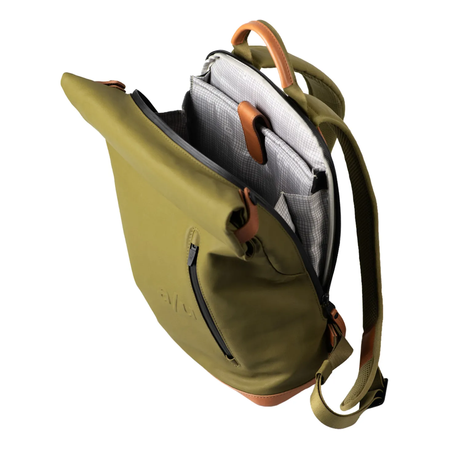 Der Rolltop-Rucksack bietet Platz für Unterlagen in A4 und ein Notebool bis 11 Zoll. Kleinigkeiten finden in vielen Einsteckmöglichkeiten einen Platz. Zusätzlich besitzt dieser Liebling eine große Reißverschlussöffnung auf der Rückseite.