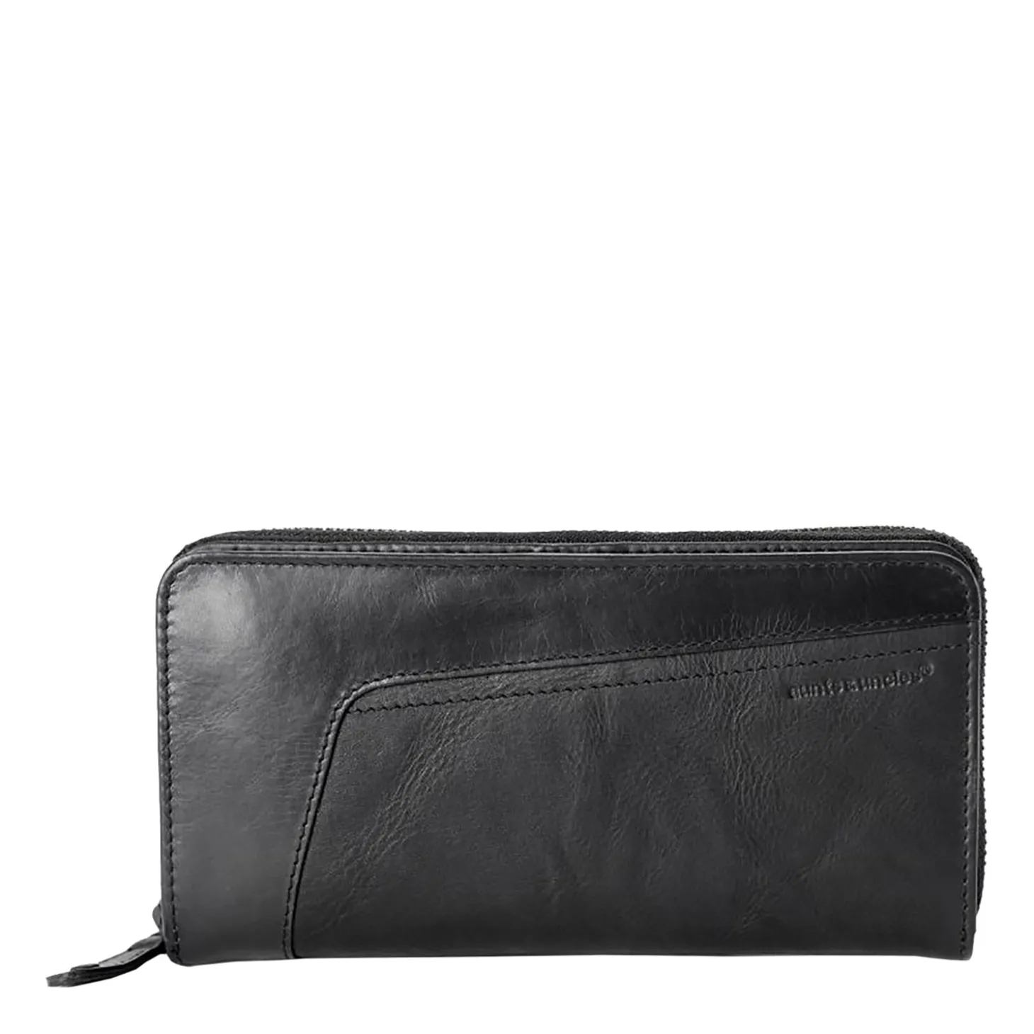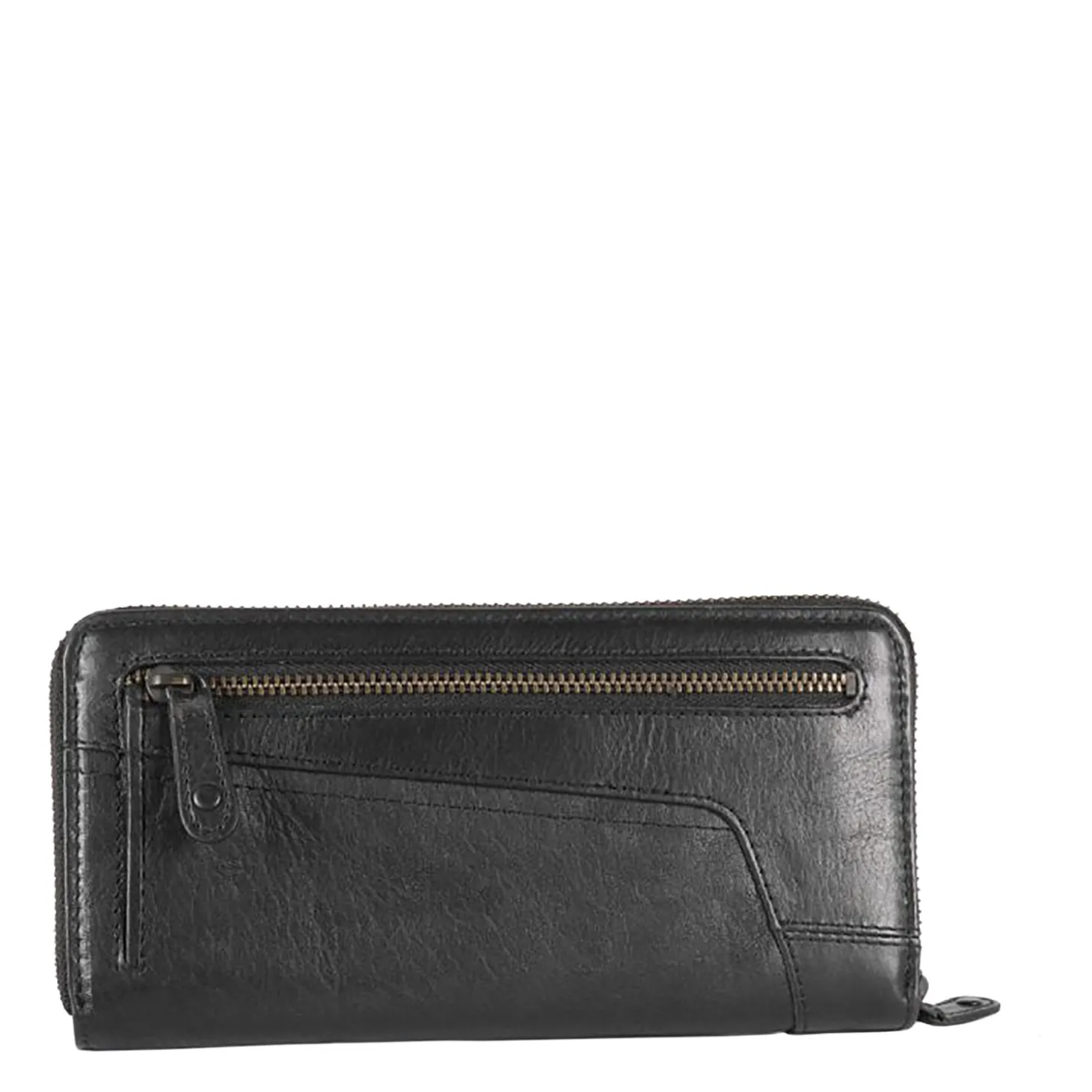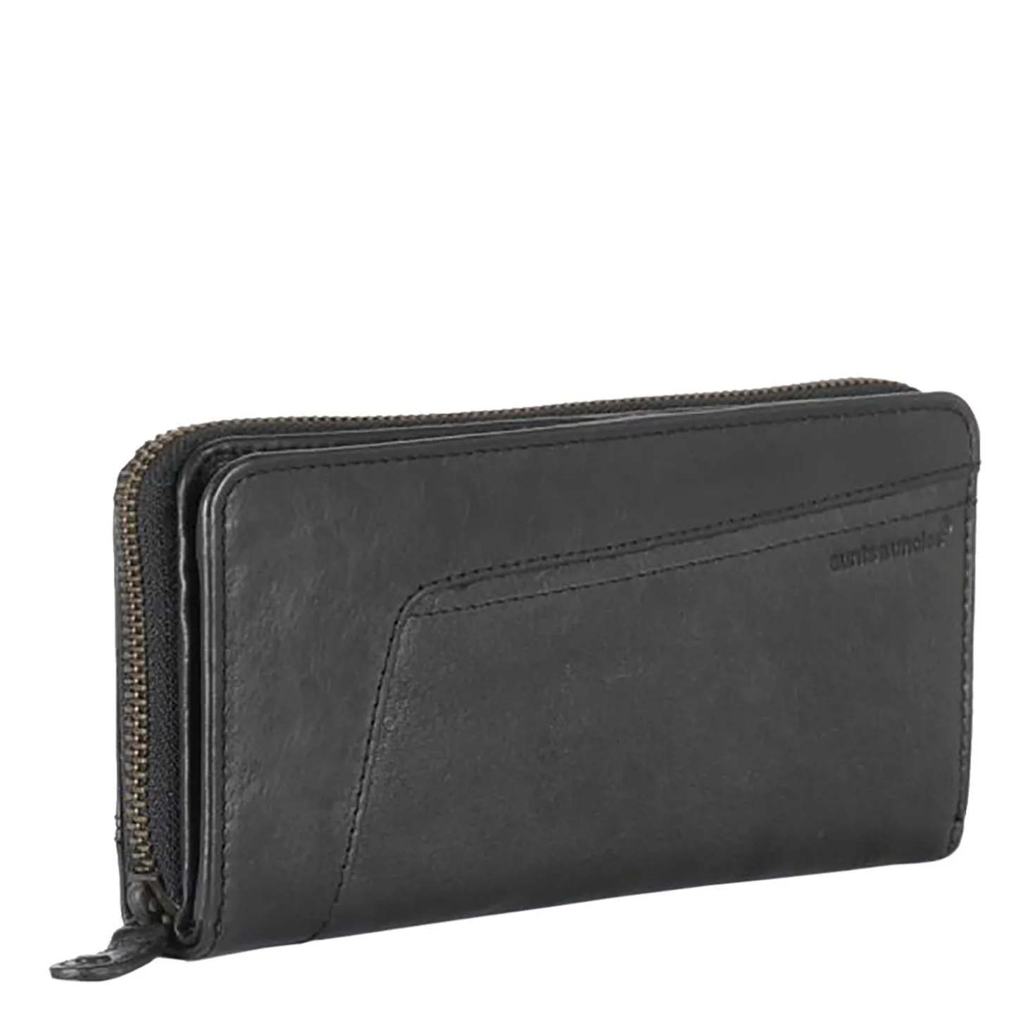 Innen gibt es ein Münzfach mit Reißverschluss, zwei Scheinfächer, 16 Kartenfächer und ein transparentes Netzfach. Ein zusätzliches Reißverschlussfach befindet sich auf der Rückseite. Das Portemonnaie schließt mit einem umlaufenden Reißverschluss.