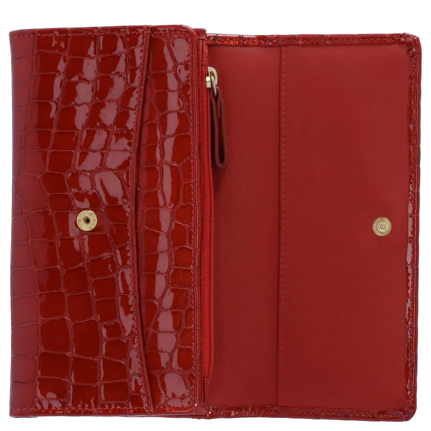 Stilvolle Geldbörse mit zeitgemäßem Kroko-Look. Das geprägte italienische Kalbleder verleiht der Börse eine einzigartige Weichheit und Geschmeidigkeit, wodurch sie sich besonders angenehm in der Hand anfühlt. Hinter dem charakteristischen Überschlagverschluss verbirgt sich eine durchdachte Innenaufteilung mit 2 großzügigen Scheinfächern und einem praktischen Reißverschlussfach für Münzgeld. Die Börse bietet außerdem 14 Kartenfächer, 6 Steckfächer sowie jeweils ein äußeres Steck- und Reißverschlussfach für zusätzlichen Stauraum. Die goldenen Metall-Accessoires und der dezente Metallic-Glanz unterstreichen die hochwertige Ausstrahlung der Geldbörse.