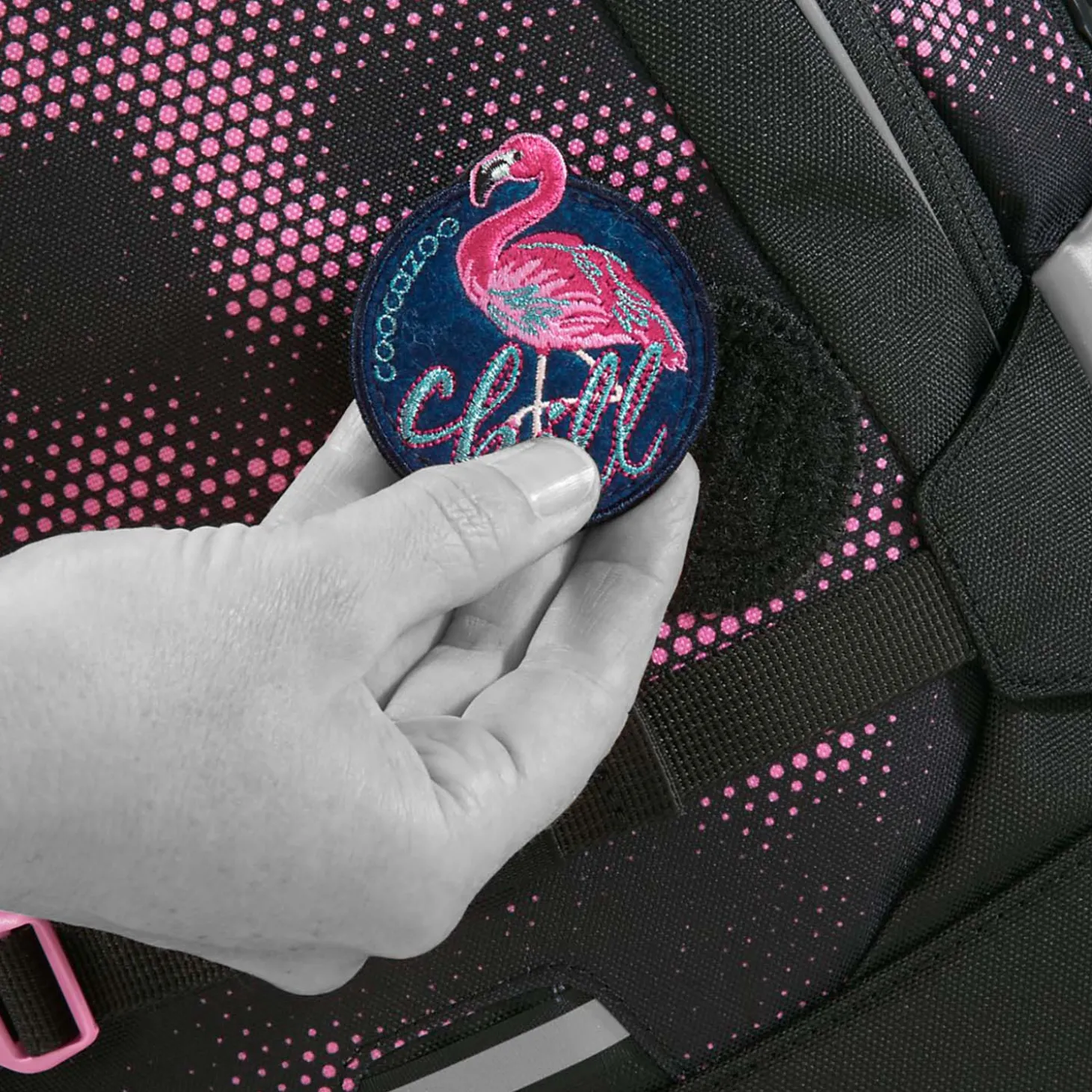 Der Schulrucksack kommt mit einem coolen Klett-Patch und lässt sich durch separat erhältliche Patches und Anhänger immer wieder aufs Neue Individualisieren. Besonders cool, der Liebling besteht aus 34 x 0,5 L recycelten PET Flaschen.