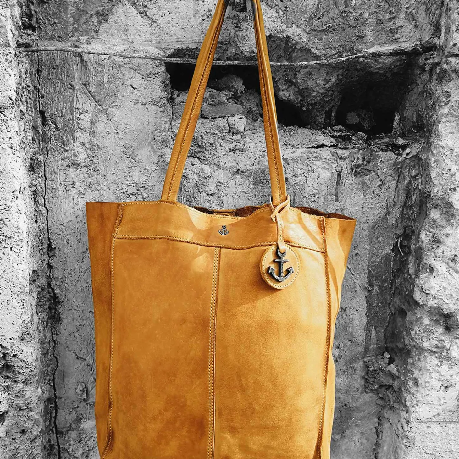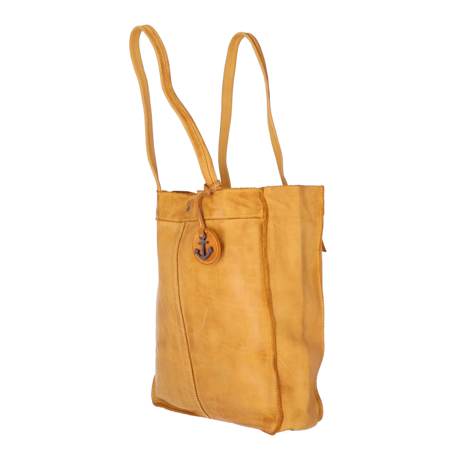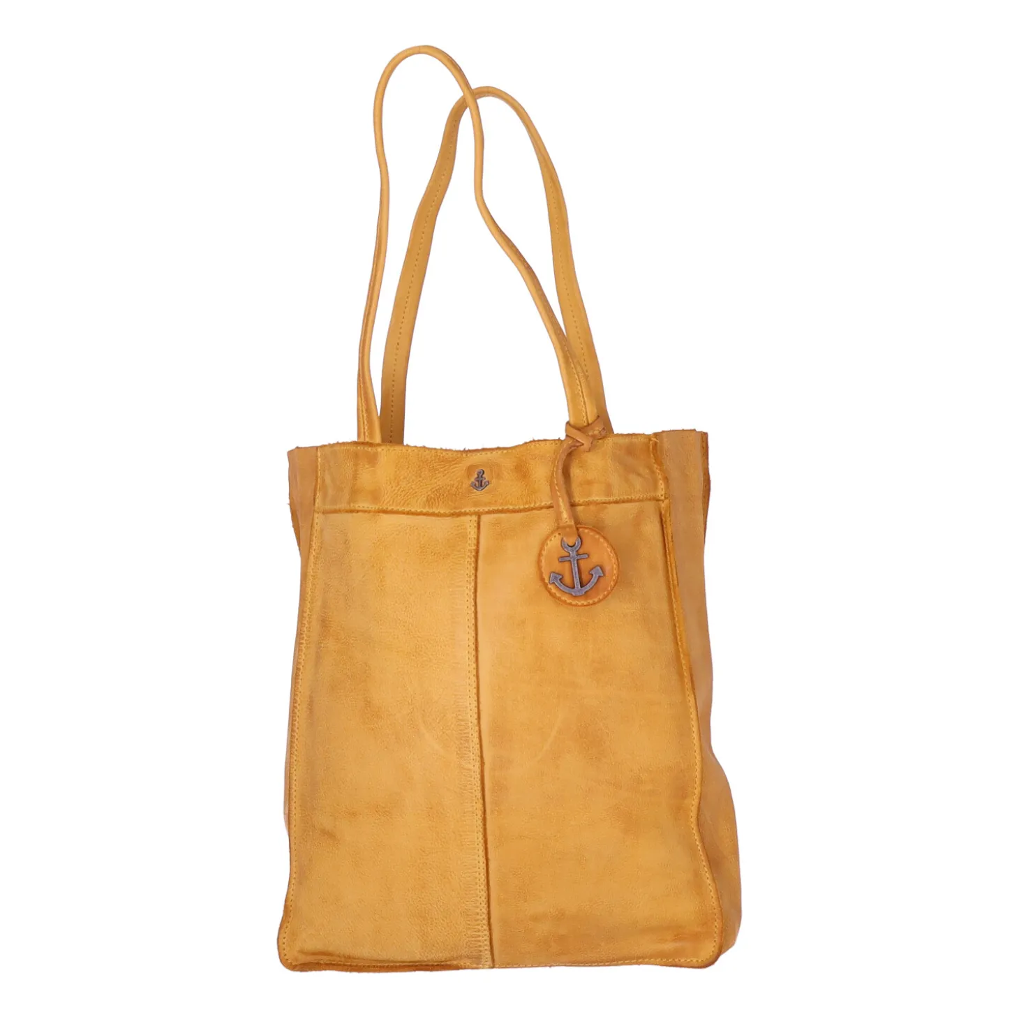Dieser Shopper ist aus besonders weichem Rindsleder gefertigt und läßt sich an den beiden Riemen bequem über der Schulter tragen.