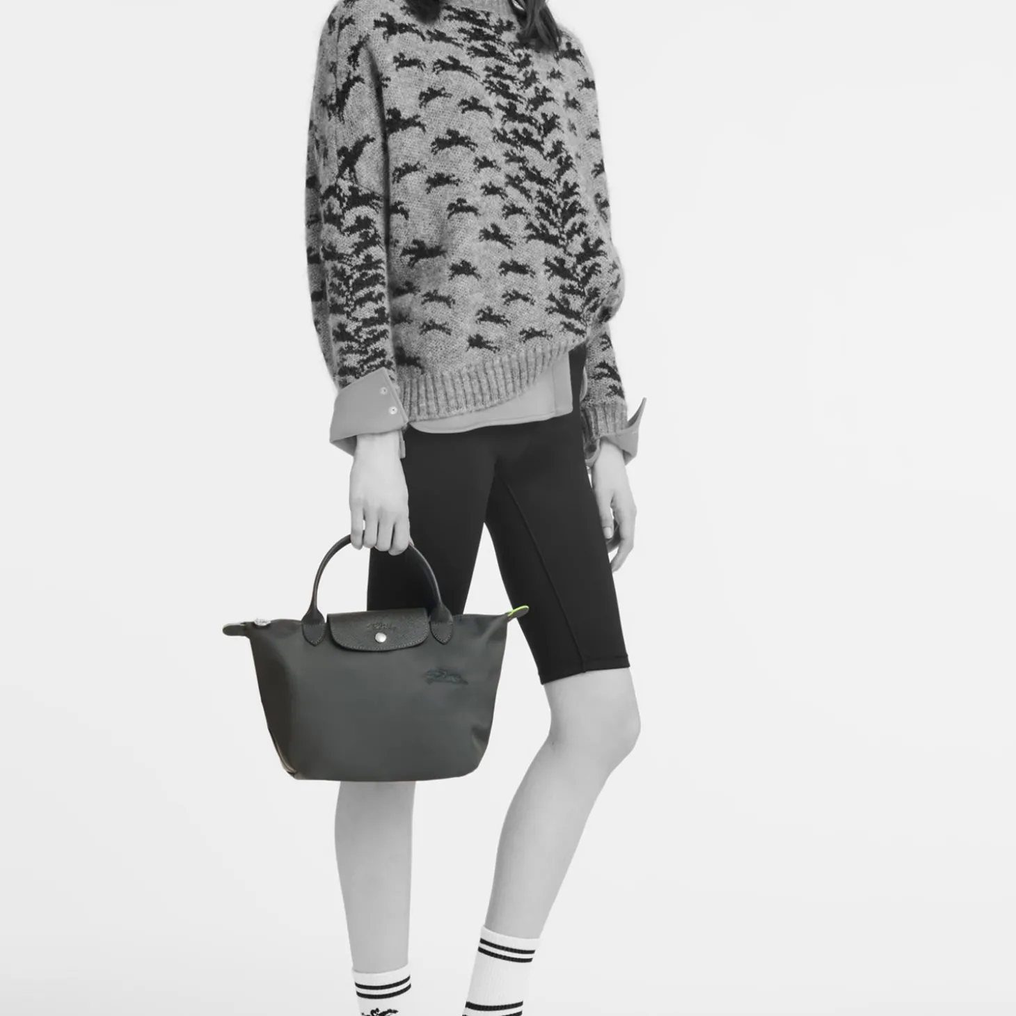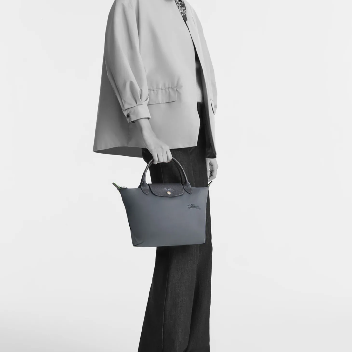 Wie alle Modelle aus dieser Serie läßt sich auch dieses auf eine minimale Größe zusammenfalten. Die Inspiration zu der speziellen Falttechnik ist auf die japanische Origami-Kunst zurückzuführen und machte die LE PLIAGE von Longchamp zu einem weltweiten Klassiker.