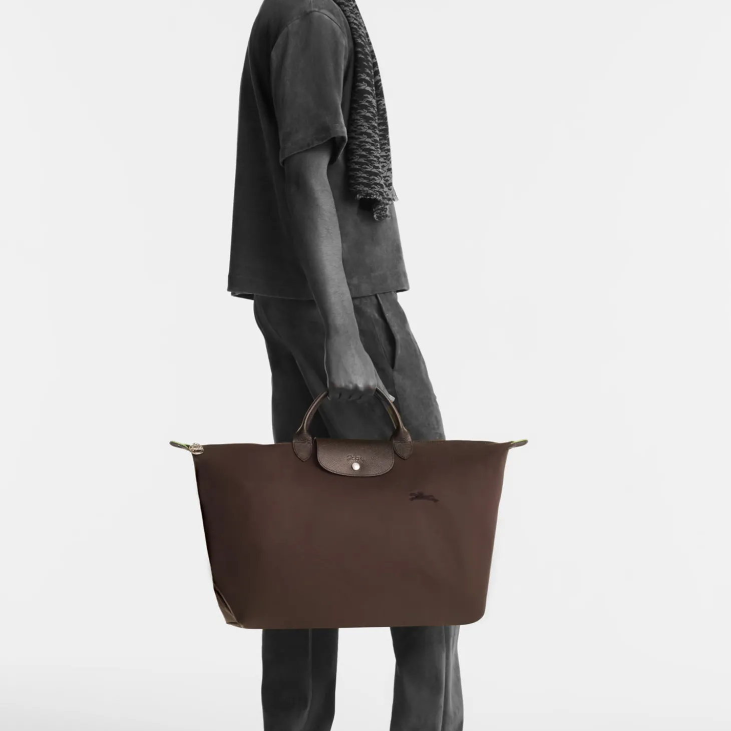 Wie alle Modelle aus dieser Serie läßt sich auch dieses auf eine minimale Größe zusammenfalten. Die Inspiration zu der speziellen Falttechnik ist auf die japanische Origami-Kunst zurückzuführen und machte die LE PLIAGE von Longchamp zu einem weltweiten Klassiker.