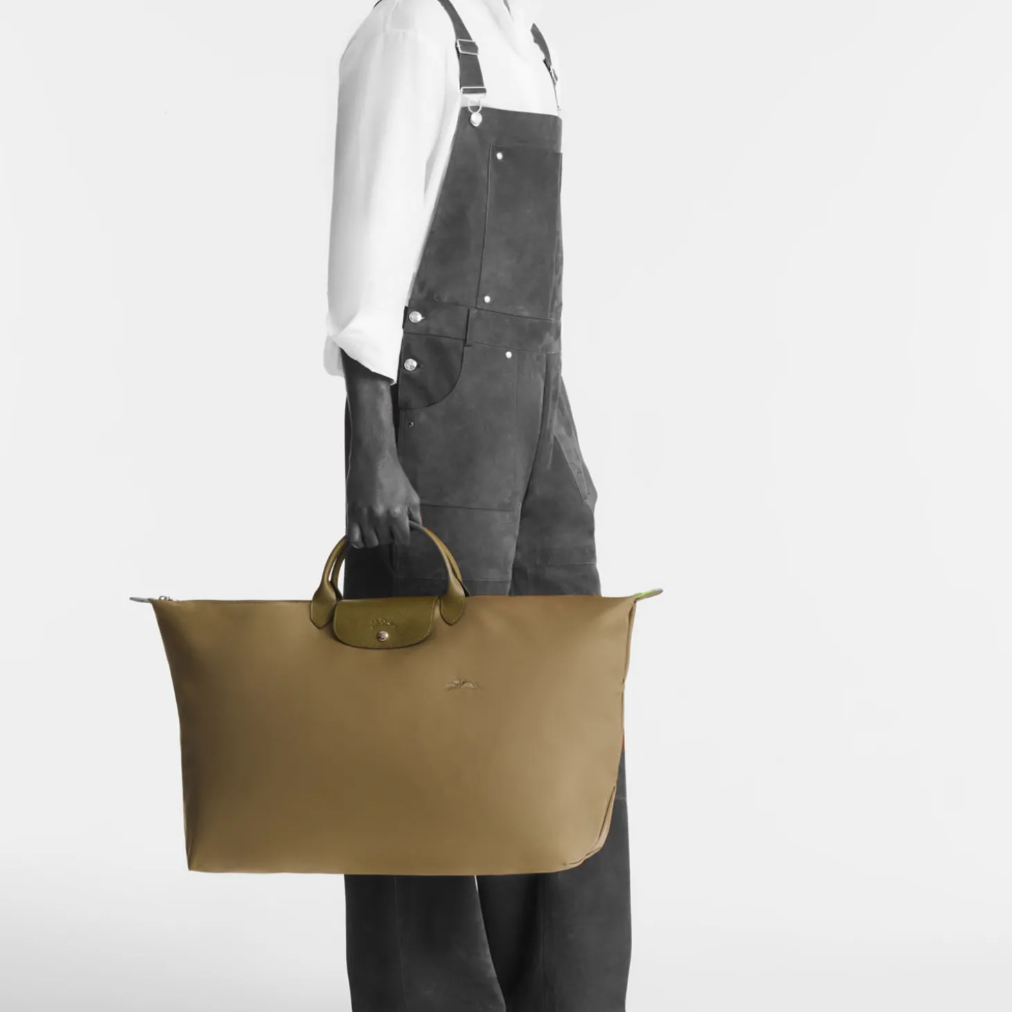 Wie alle Modelle aus dieser Serie läßt sich auch dieses auf eine minimale Größe zusammenfalten. Die Inspiration zu der speziellen Falttechnik ist auf die japanische Origami-Kunst zurückzuführen und machte die LE PLIAGE von Longchamp zu einem weltweiten Klassiker.