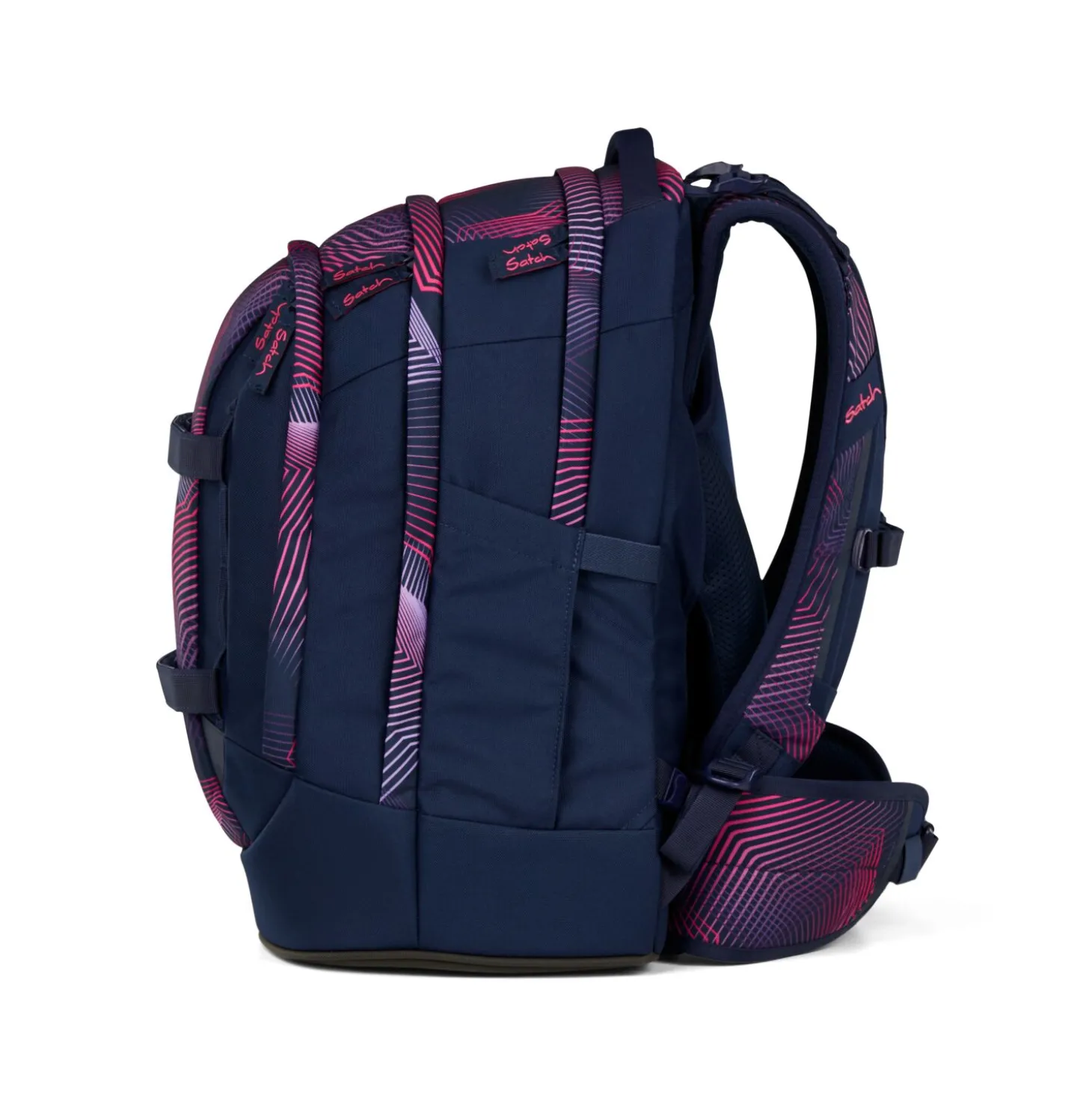 Ergonomie hat für satch stets eine hohe Priorität. Die Inspiration für das einzigartige Ergonomiekonzept kommt aus dem Bergsport und verlagert das Gewicht des Ranzens zuverlässig von den Schultern auf den stabilen Beckenbereich – dabei unterstützen auch die breiten Beckenflossen. Dank der Alu-Rückenschiene lässt sich der pack passgenau auf die Körpergröße des Kindes einstellen und wächst zudem mit diesem mit. Ein ausgetüfteltes Rückensystem sorgt für eine bessere Luftzirkulation am Rücken.