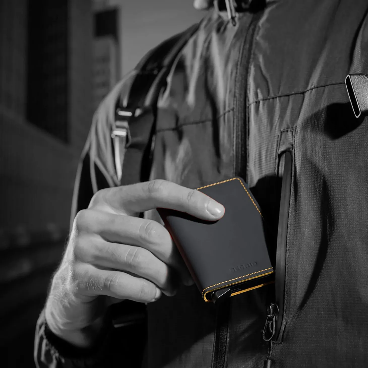 Beschreibung Secrid Miniwallet Matte-Farbe: black & ochre