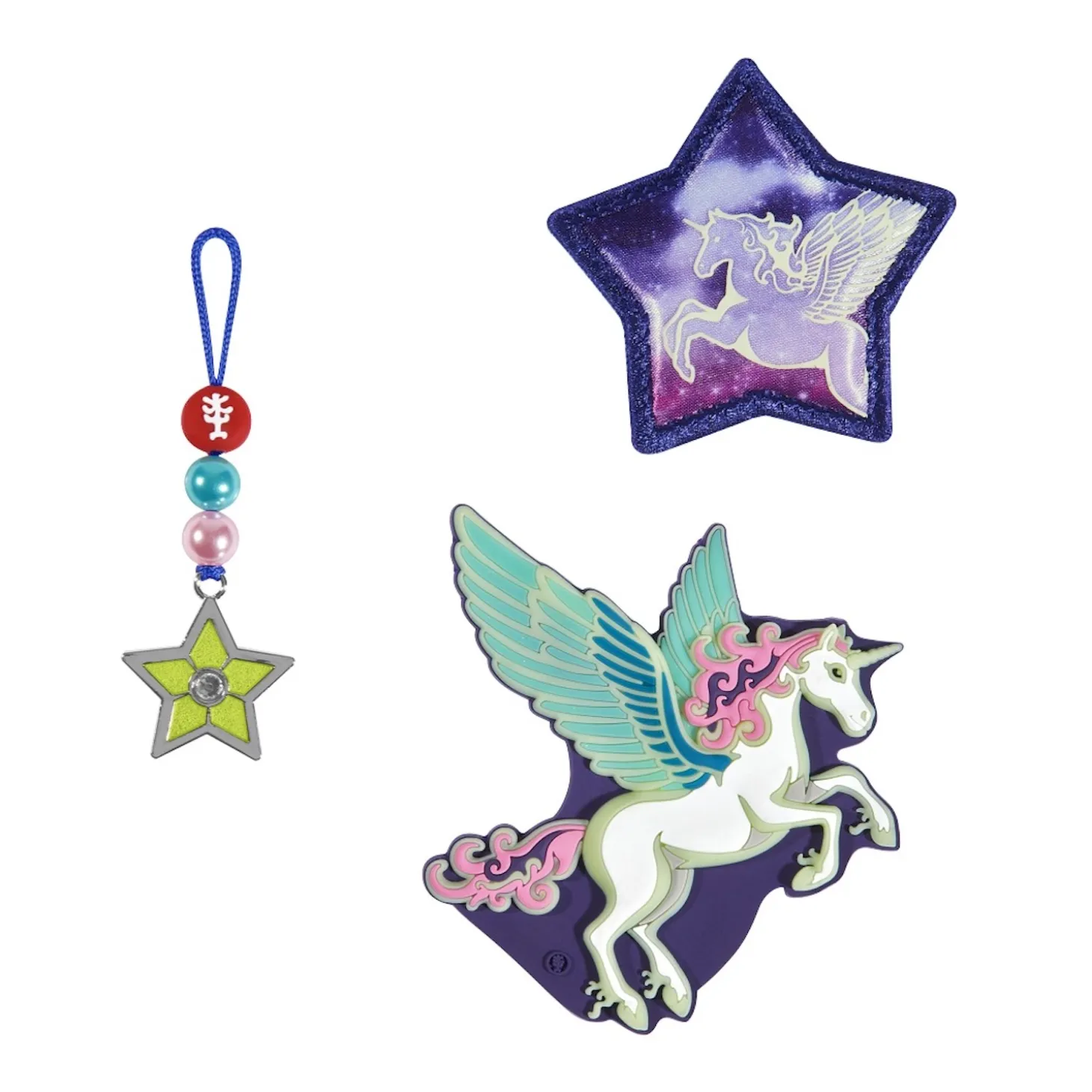 Damit hat Ihr Kind immer schnell eine Abwechslung zur Hand und kann den eigenen Schulranzen jederzeit selbst aufpeppen. Die Sets bestehen aus zwei Applikationen und einem passenden Anhänger. Über die Magnetfläche an der Vorderseite des Schulranzens oder Rucksacks können sie spielend leicht angebracht werden.