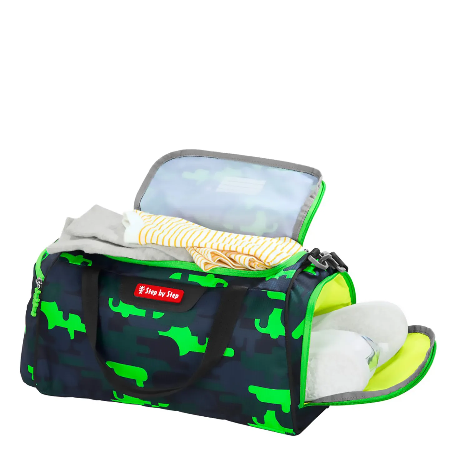 Diese Sportasche von Step by Step ist die ideale Ergänzung zu den Schulranzen, aber natürlich auch jederzeit ein zuverlässiger Begleiter auf dem Weg zum Freizeitsport.