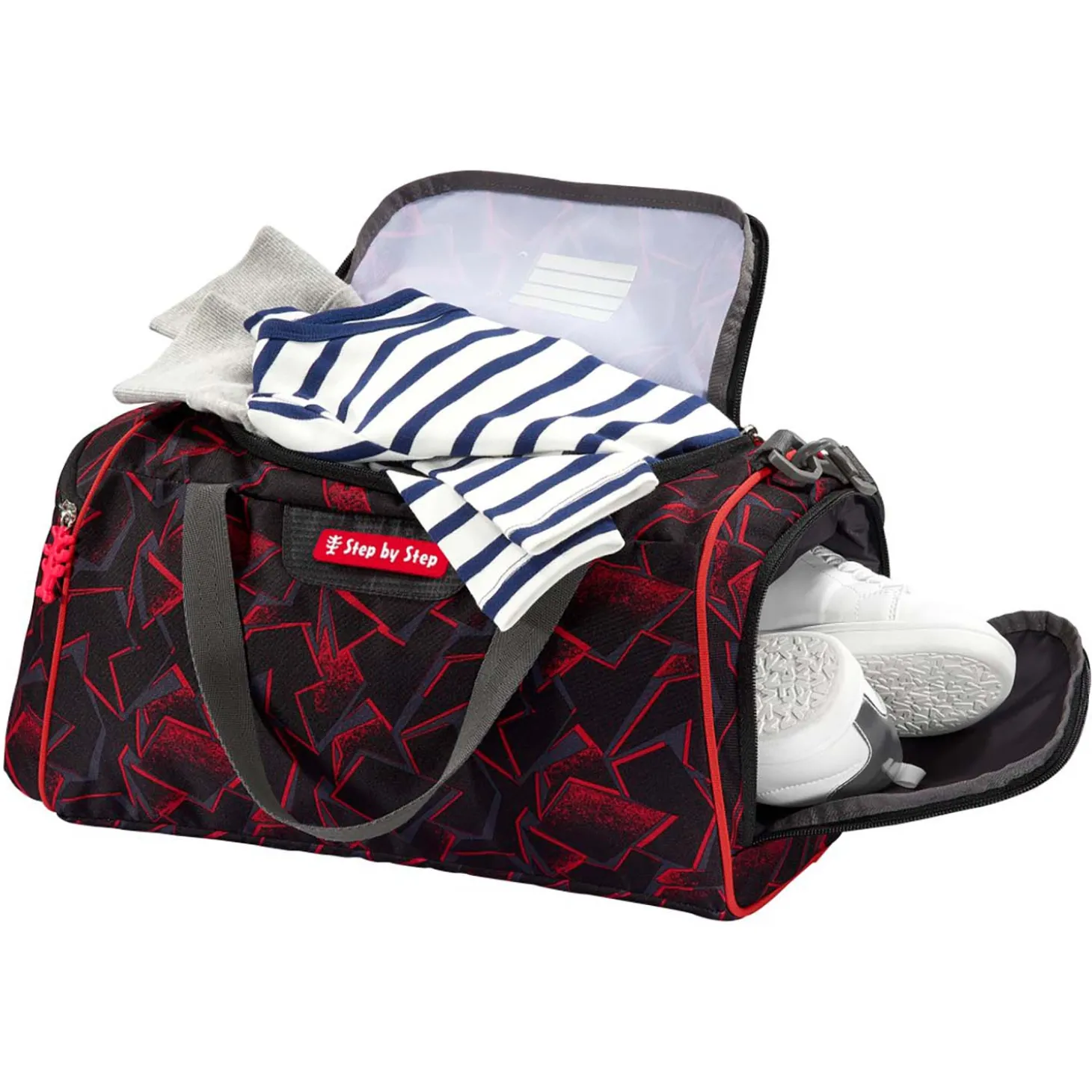 Diese Sportasche von Step by Step ist die ideale Ergänzung zu den Schulranzen, aber natürlich auch jederzeit ein zuverlässiger Begleiter auf dem Weg zum Freizeitsport.