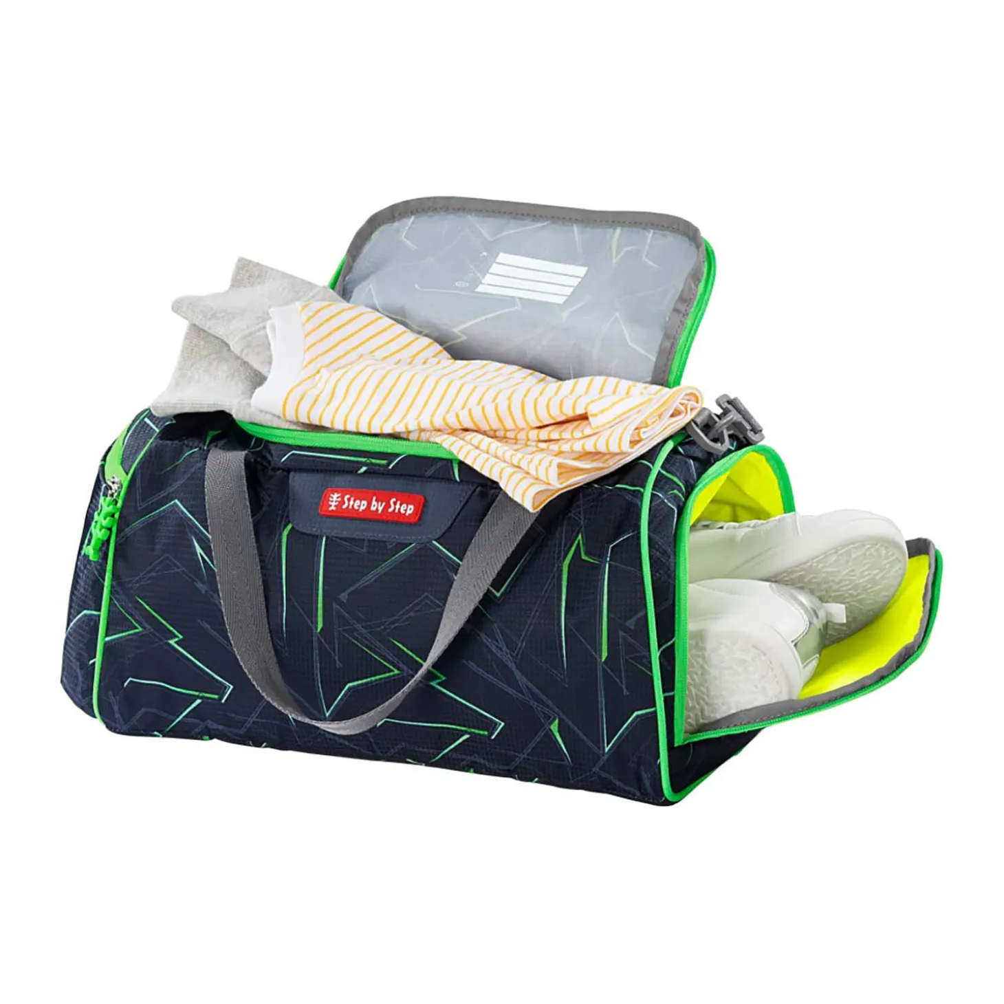 Diese Sportasche von Step by Step ist die ideale Ergänzung zu den Schulranzen, aber natürlich auch jederzeit ein zuverlässiger Begleiter auf dem Weg zum Freizeitsport.