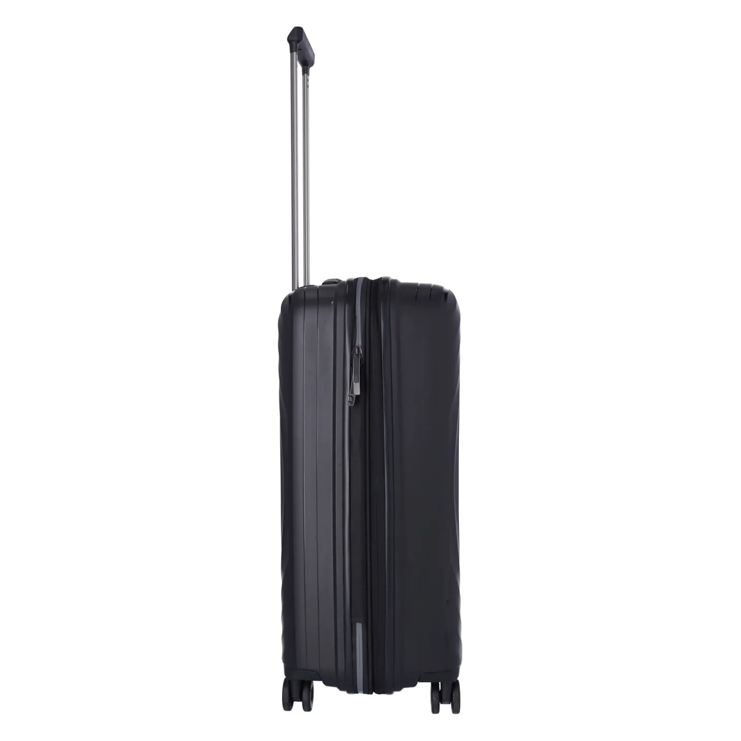 Vier kugelgelagerte Doppelrollen sorgen für leise und leichte Fortbewegung des Koffers – entweder auf zwei Rollen hinterhergezogen oder auf vier Rollen nebenhergeschoben.